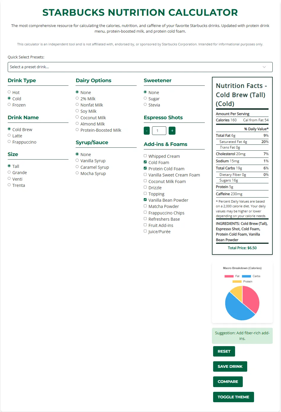 Starbucks Nutrition Calculator