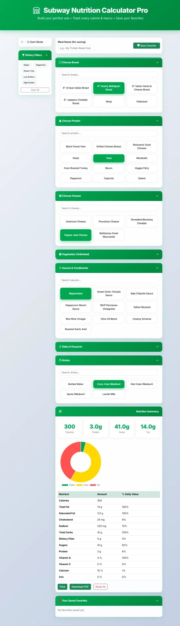 Subway Nutrition Calculator